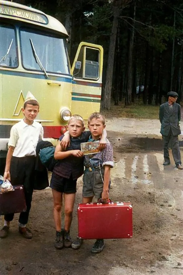 8. Прощание с друзьями и фотография на память после смены в пионерском лагере.