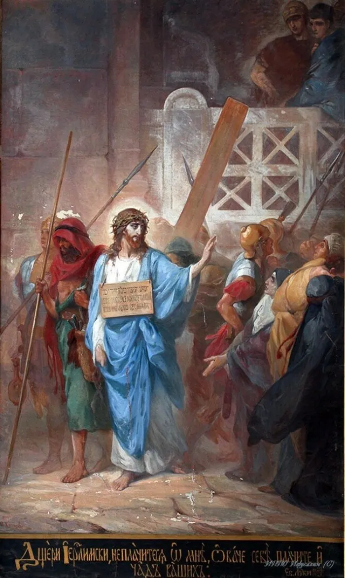 «Не плачьте, дщери Иерусалимские!» (1899) Страстной цикл росписи церкви святого Александра Невского, Александровское подворье Императорского Православного Палестинского общества