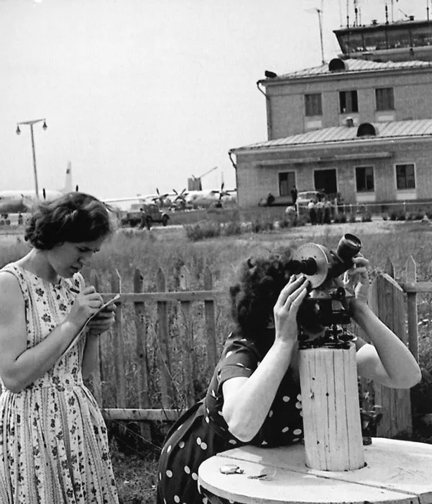 36. Девушки с теодолитом в аэропорту Шереметьево, 1960–е годы, Москва