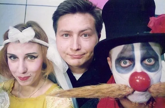 11. Татьяна Иванова, Эдуард Верхотуров и Вадим Набоков на съёмках предачи «Каламбур» (1996 год).