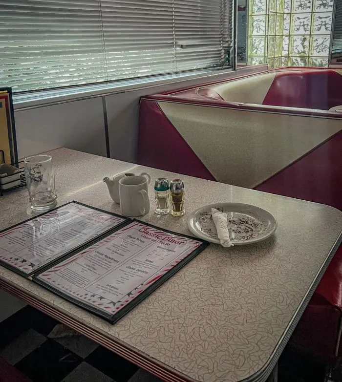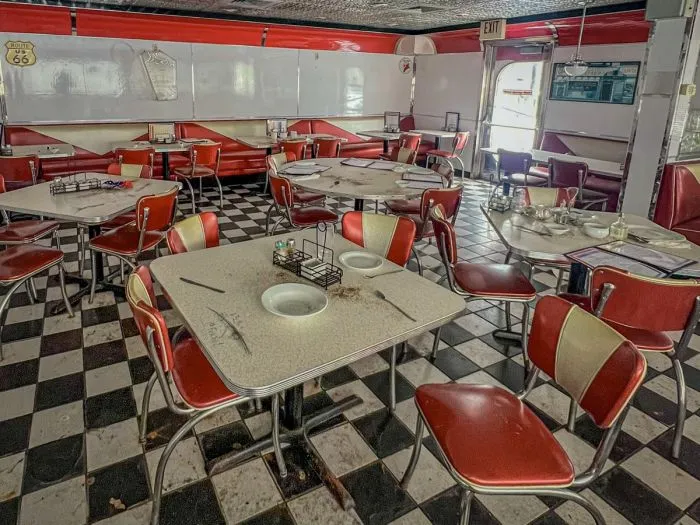 32-летний исследовал заброшенную закусочную около двух часов и сумел запечатлеть пустые тарелки и стаканы, а также олдскульный декор.
