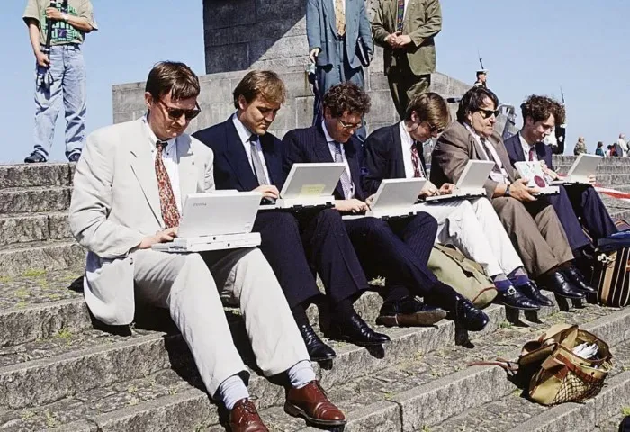 Журналисты за работой во время визита принца Чарльза в Россию в 1994 году.