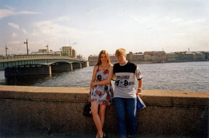 Молодые люди на Пироговской набережной. Санкт- Петербург, 1998 год.