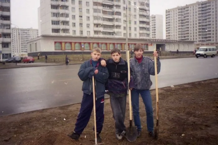 Парни на субботнике. Зеленоград, 1990-е годы.