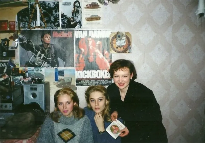 Подружки на фоне плакатов с героями боевиков, 1996 год.