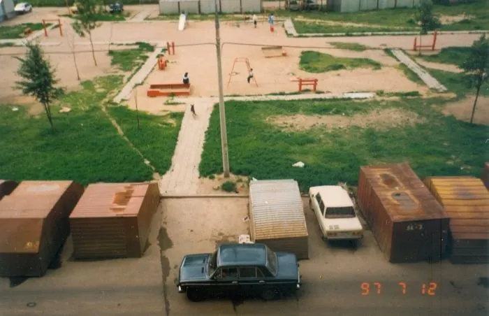 10. "Свободная парковка" в одном из дворов Москвы, 1997 год.