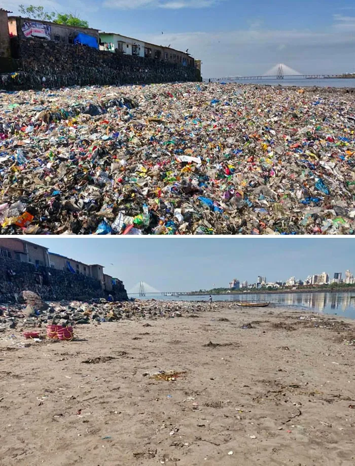 8. Молодежь занимается уборкой реки Мити (Мумбаи, Индия) уже больше года. Тогда или сейчас