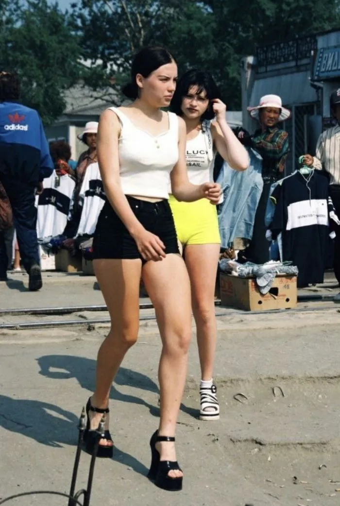 12. Девушки в стиле "Playboy" заигрывают с сотрудником ГАИ, 1995 год.
