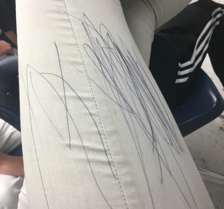 10. Задумчиво водила по ноге, как я думала закрытой ручкой