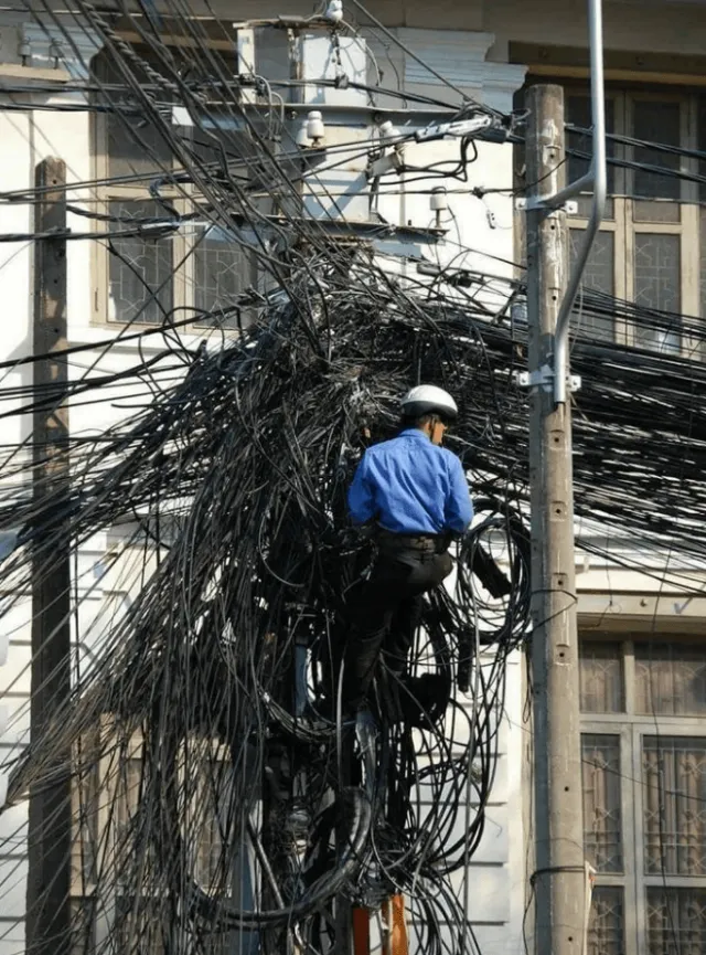 Токио, улица Хакусан и голубое небо за рекламой и проводами