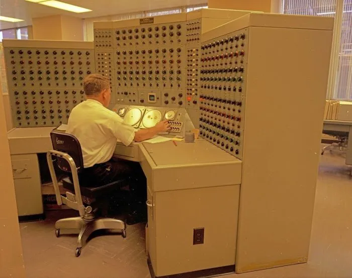 11. Мужчина, работающий за аналоговым компьютером, 1968 год