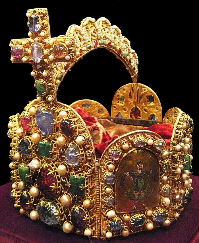 9. Императорская корона Священной Римской империи. Оттон III («Чудо мира») был коронован им в 994 году папой Григорием V. Крест был добавлен в начале 11 века, а арка ок. 1030 г.