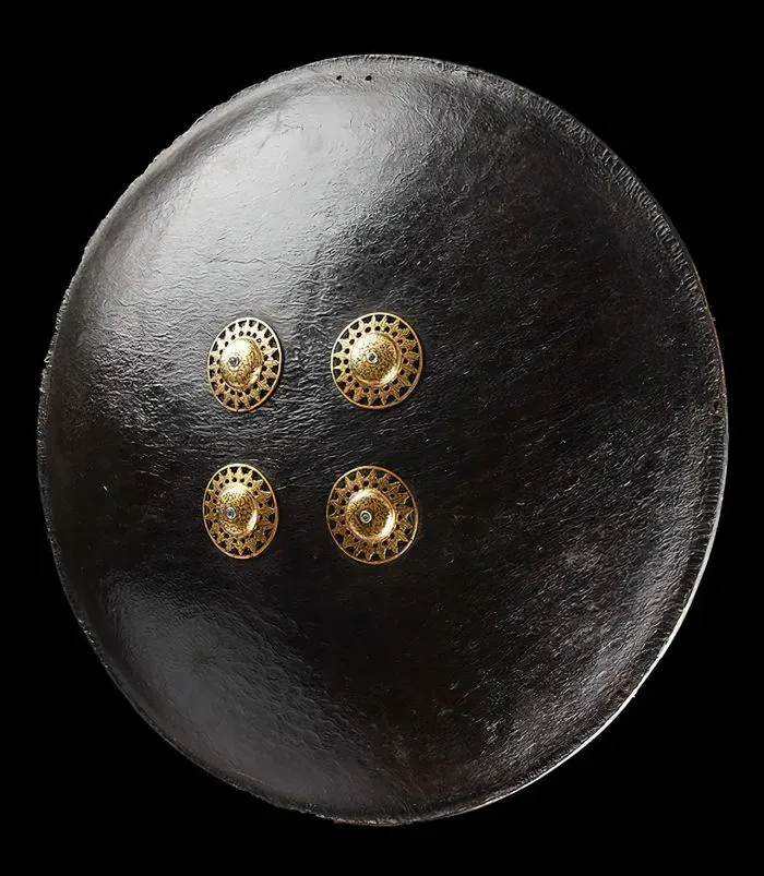 16. Черный щит (дхал) с четырьмя умбонами. Индия, 17 век