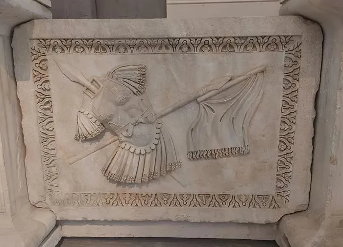 18. Римский рельеф с изображением тропея. Тропеи (трофеи) были военными монументами, воздвигавшимися греками и римлянами в честь победы в битве