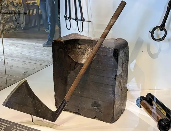 25. Дубовая плаха, использованная для последней публичной казни на Тауэр-Хилл в Лондоне в 1745 году