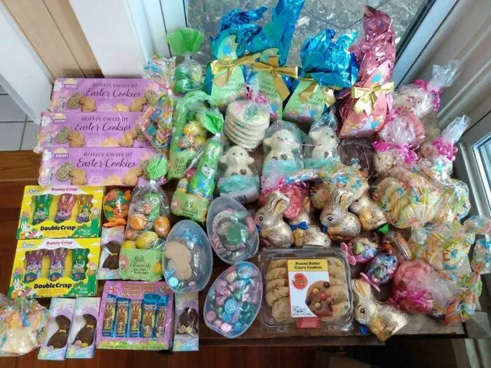 25. «Поздравление с прошедшей Пасхой, оно же напоминание от Иисуса о том, что капитализм — это сломанная система, которая ставит прибыль выше людей! Все это — из мусорного бака местной пекарни, выброшено за одну ночь... Всё с неистекшим сроком годности. Грущу и злюсь одновременно, что они просто выбросили все это, вместо того, чтобы пожертвовать и скрасить день какому-нибудь ребенку»
