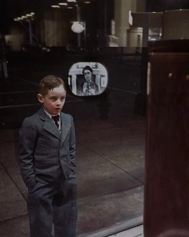 5. Мальчик смотрит телевизор в первый раз в витрине магазина, 1948 год