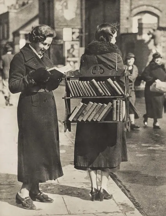 34. Женщина-ходячая библиотека. Лондон. Великобритания. 1930-е годы