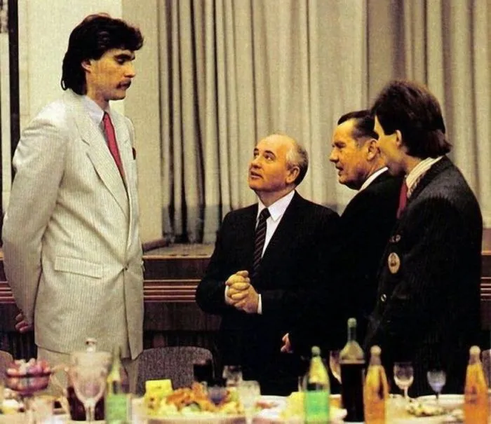 38. Баскетболист сборной СССР Арвидас Сабонис во время торжественного приема просит Горбачева разрешения играть за границей. Позже это разрешение он получил, и сезон 1989-1990 играл в Испании