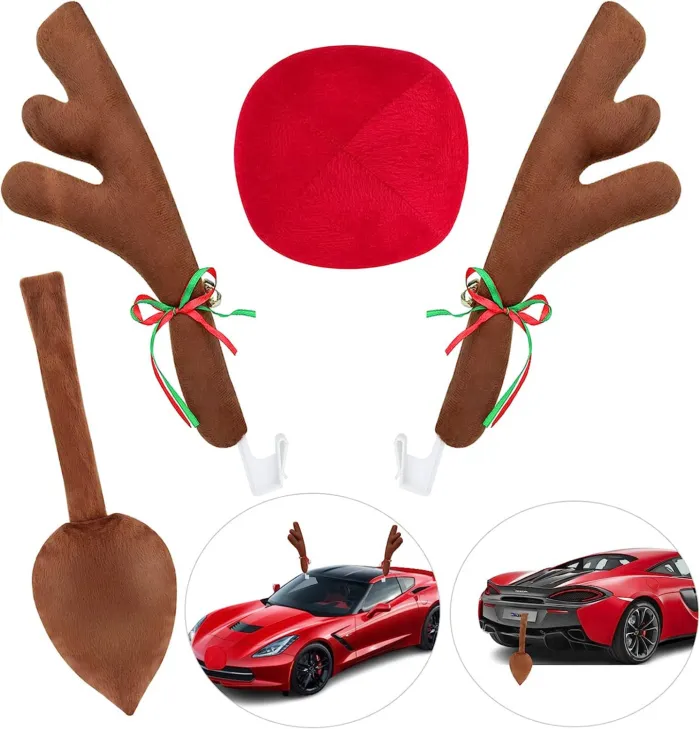 Кто-то за много месяцев не убрал игрушечный олений хвост от рождественского украшения. А говорят, мы елку долго выкидываем :) Машина при помощи накладных рогов, носа и хвоста превращается в Рудольфа - главного оленя Санты.