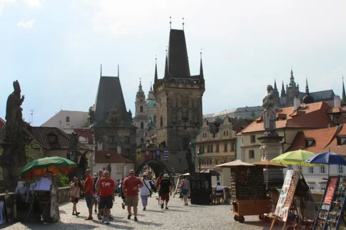 Самой известной достопримечательностью Праги является Карлов мост, построенный в 1402 году королём Карлом 6. Длина моста 520 м, ширина — 9,5 м.
