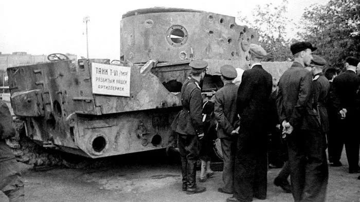 28. 60-тонный Тигр был представлен в двух экземплярах. Один из них основательно побит советскими артиллеристами, а другой захвачен легко поврежденным. Выставка 22 июня 1943 года в ЦПКиО
