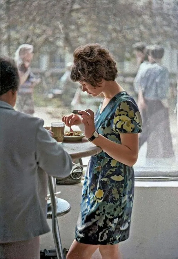 31. В кафе «Спутник» на Комсомольском проспекте. Котлеты с гречкой и компот. Пермь. СССР. 1975 г. Фото Валерия Усманова.