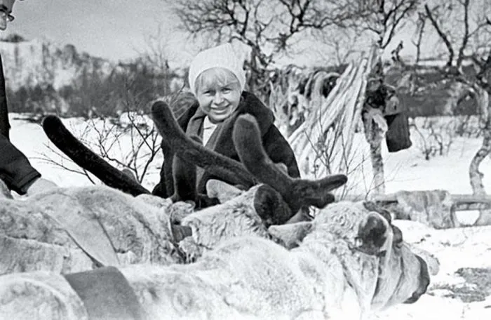 32. Советский композитор Александра Пахмутова в заполярном оленеводческом совхозе. 23 ноября 1965 года. Фото Птицына /Фотохроника ТАСС/