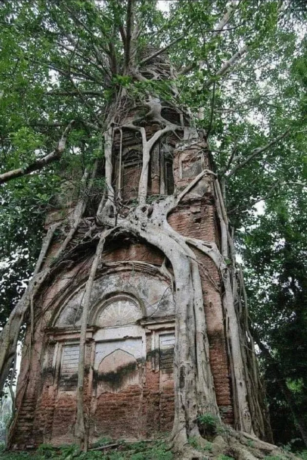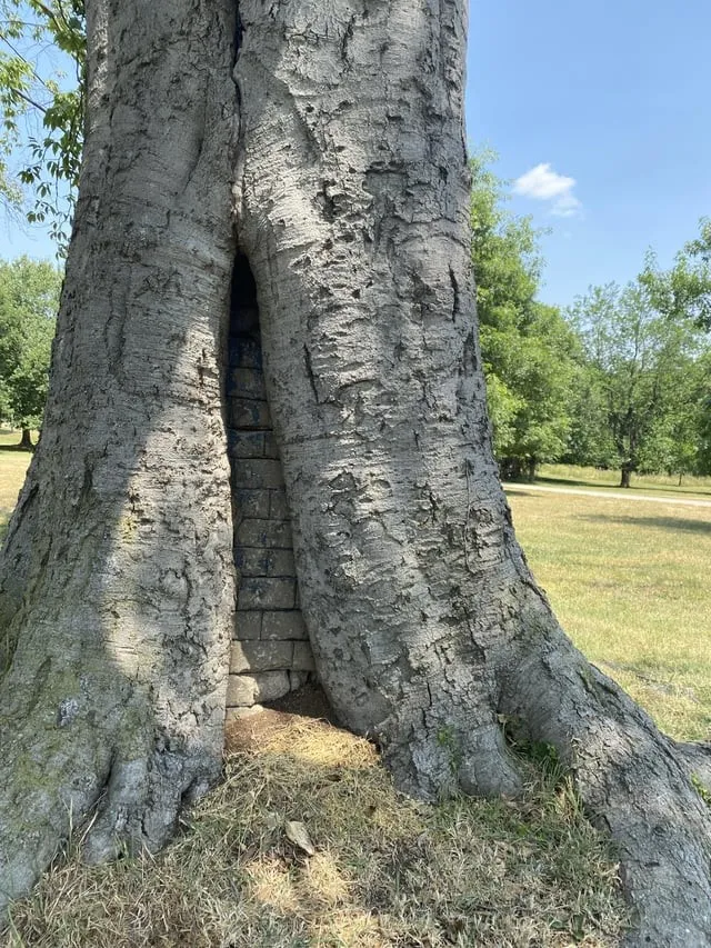 14. Дерево поглощает кирпичную стену