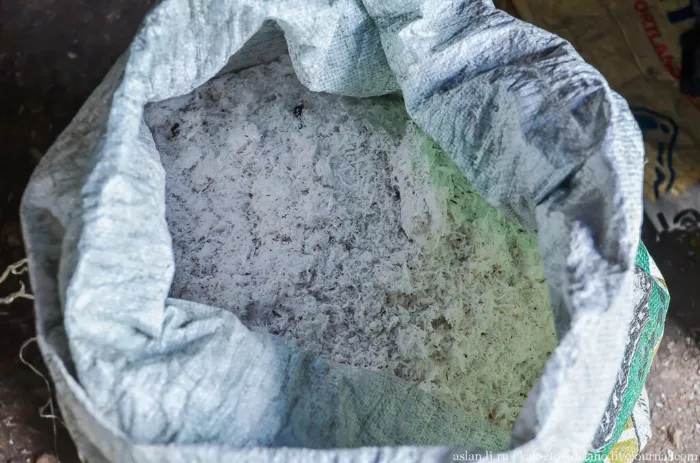 После того, как из стружки достаточно выжато молоко, ее высыпают в мешок.
