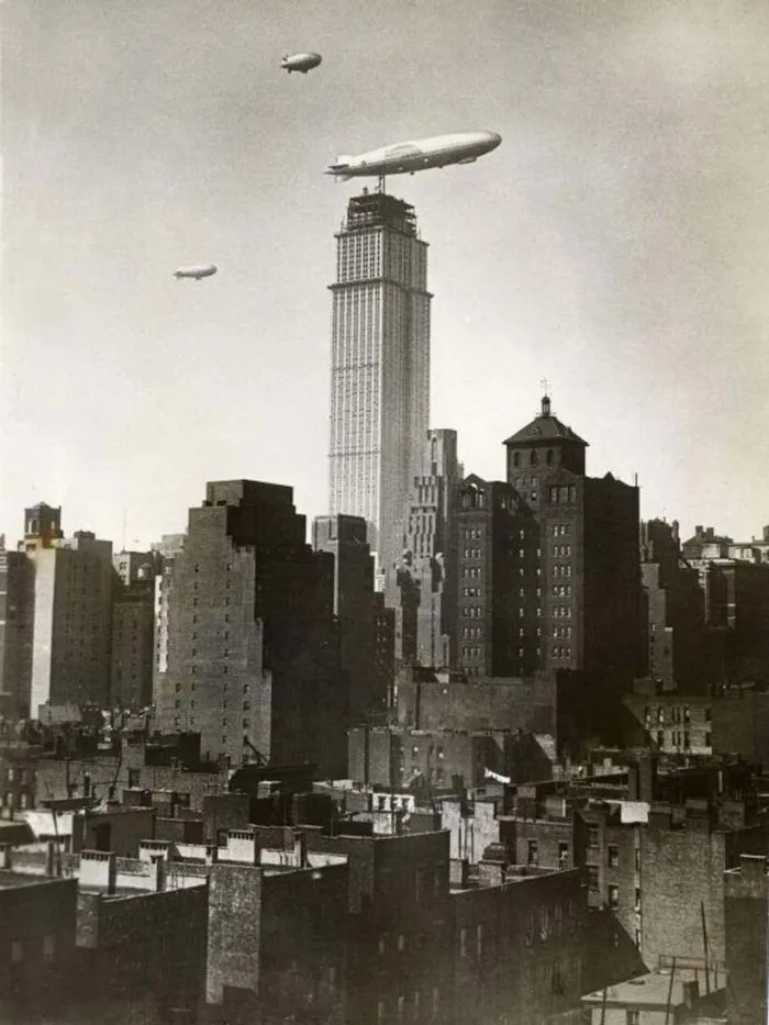 Дирижабль у Эмпайр-стейт-билдинг в октябре 1930-го