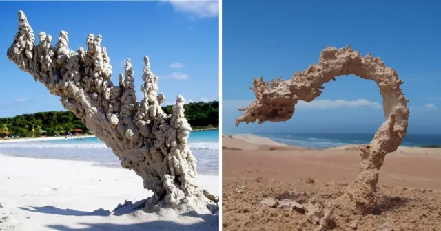 Это фульгурит. Он образуется, когда молния попадает в песок или почву