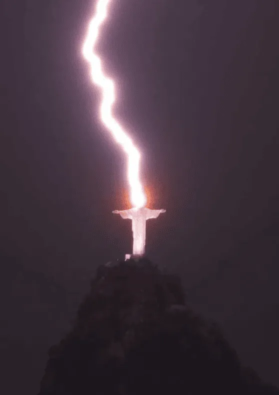 Молния ударила в статую Христа-Искупителя в Рио-де-Жанейро