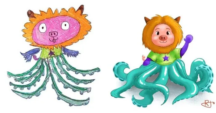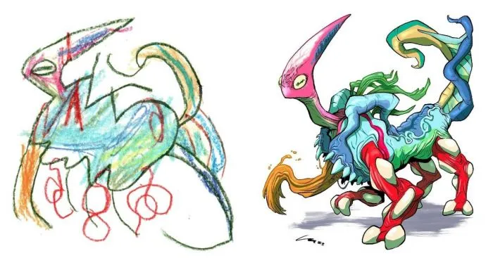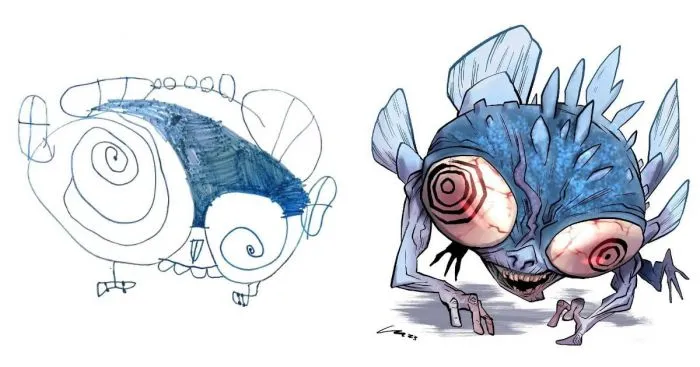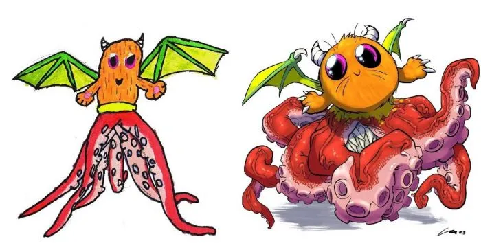 В этой нелёгкой затее поможет проект «Monsters Go», художники которого превращают детские каракули в фантазийных монстров всех форм и размеров. И если одни из них получаются милейшими добряками, то от вида других кровь стынет в жилах!