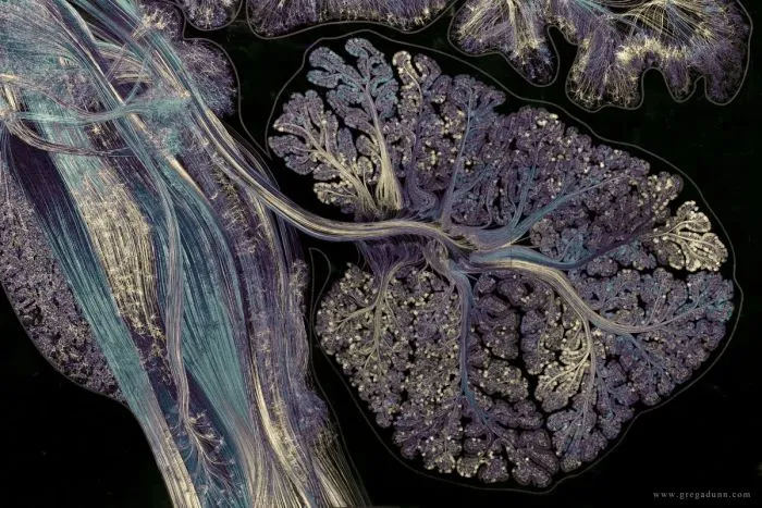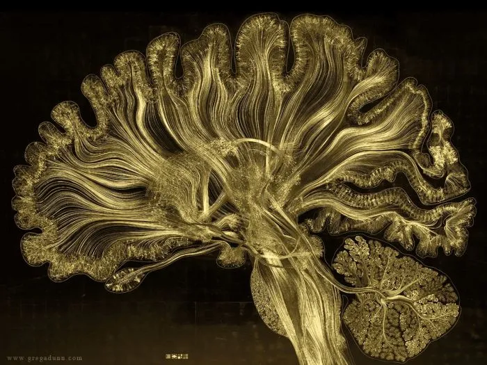 Кто-то считает, что творчество и наука не совместимы, но нейробиолог Грег Данн и физик Брайан Эдвардс с этим совершенно не согласны. Объединившись, учёные сотворили «самый фундаментальный автопортрет из когда-либо созданных», показав очень красивую визуализацию процессов, которые происходят в нашем мозгу каждый день. Это серия снимков фрагментов человеческого мозга, пока они заняты обработкой информации или выполнением своих функций. В процессе работы части мозга были раскрашены вручную с активным использованием сусального золота.Наш мозг, являясь невероятно сложной системой, каждую секунду совершает множество процессов. Если бы фрагменты нашего мозга во время работы подсвечивались так же, как и на работах Грега Данна и Брайана Эдвардса, только представьте, какая бы яркая цветастая дискотека творилась бы в голове каждого из нас.