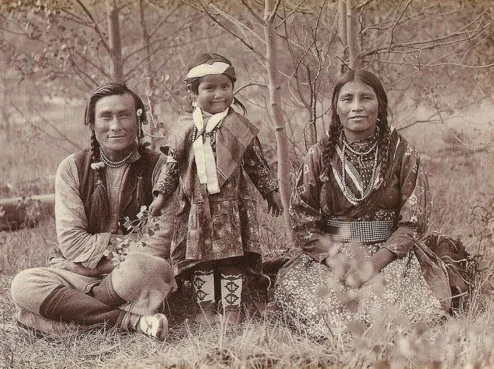 2. Самсон Бивер с женой Лией и их дочерью Фрэнсис Луизой из племени Стони, 1907 год