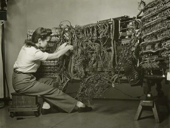 11. Инженер подключает один из первых компьютеров IBM, 1958 год