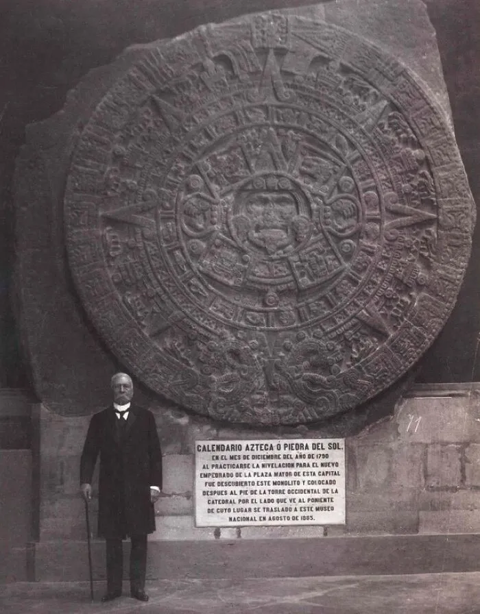 30. Президент Мексики Порфирио Диас перед солнечным календарем ацтеков, 1910 год