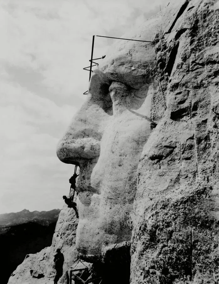 50. Работа над барельефом Джорджа Вашингтона на горе Рашмор, Южная Дакота, США, 1932 год