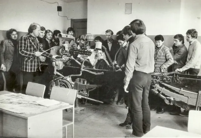 Студенты с преподавателем СПТУ-84 в кабинете-лаборатории.