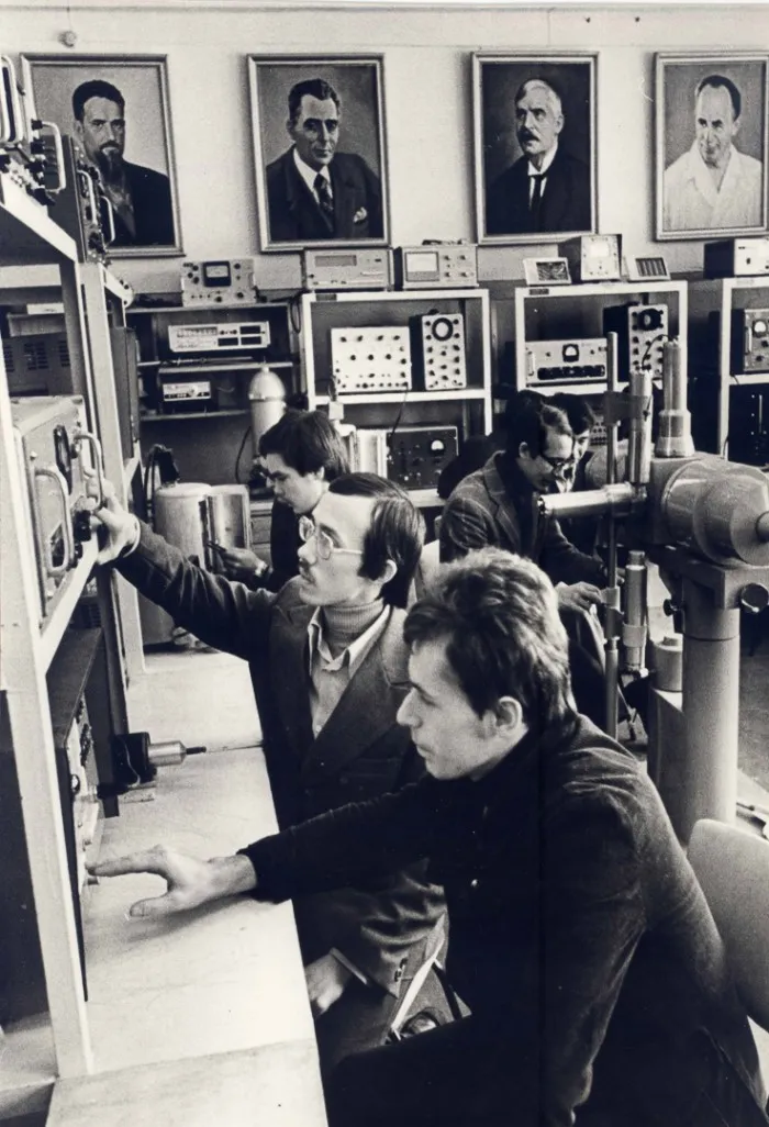 Студенты III курса - радиофизики в лаборатории ядерной физики. БГУ, 1988г.