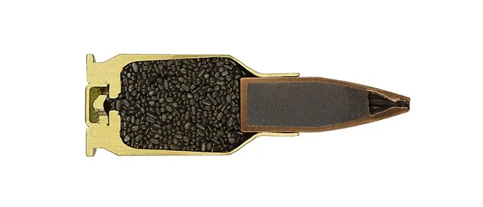 Патрон калибра 5,56×45 мм с твердосплавной бронебойной пулей и медным поддоном для защиты канала ствола оружия и улучшения обтюрации. Обтюрация — это обеспечение герметичности ствола при выстреле.
