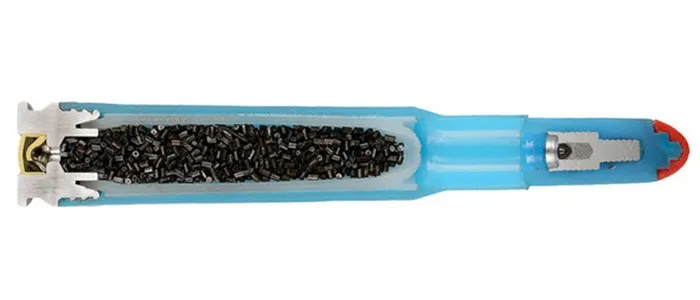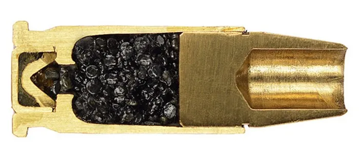 Разрушаемая безоболочечная пуля из полимерной смолы со стальными шариками. Назначение то же самое, что и у предыдущего патрона, но только если противник без бронежилета.