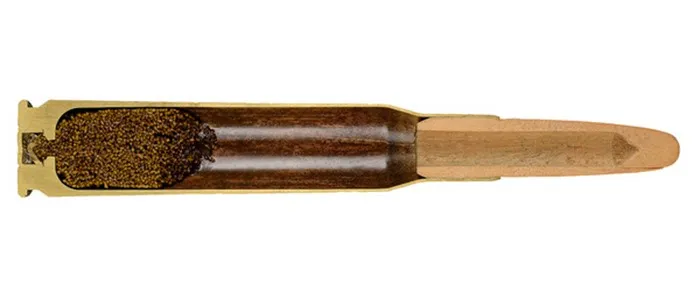 Шведский тренировочный патрон калибра 6,5×55 мм Swedish Mauser с деревянной пулей. 1950-е годы.