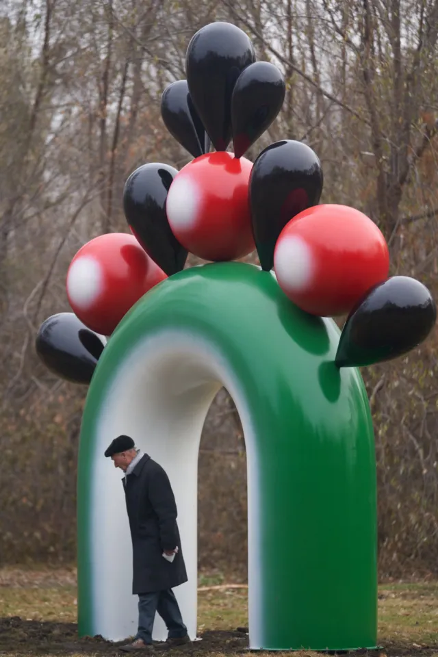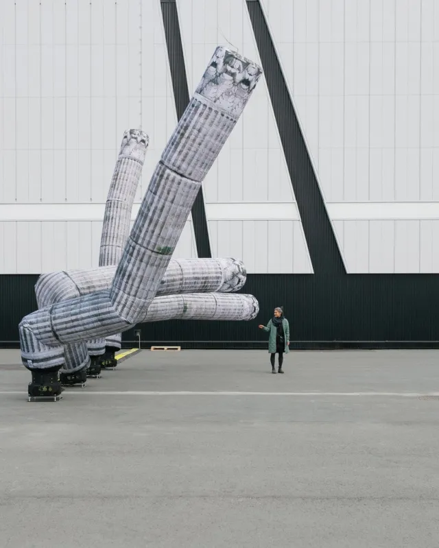 Ироничная инсталляция, превратившая мощь и незыблемость античных колонн в самопроизвольно движущиеся надувные колонны. Возможно, это произведение призвано напомнить о сохранении исторически значимых объектов, которые не заменить искусственным «надувательством».
