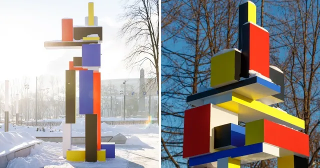 Супрематическая конструкция не только разбавляет серость и однообразность многоэтажек, но и ещё раз напоминает о сложности, порой алогичности обустроенного человеком мира.