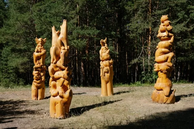Может показаться, что в таких декорациях — это тотемы диких животных, но Наталья Пастухова изобразила на них домашних питомцев. Инсталляция показывает, какой путь прошёл человек, превратив силы природы, которым поклонялся, в домашние обереги, которые, однако, остаются другими существами, не совсем понятными человеку.