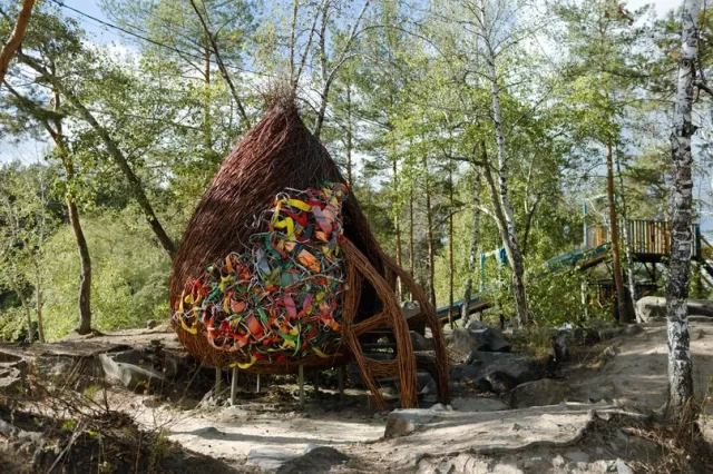 Работа обращает внимание на влияние человека на природу, где натуральное уже невозможно без искусственного. Для создания арт-объекта был использован мусор, не пригодный для переработки.