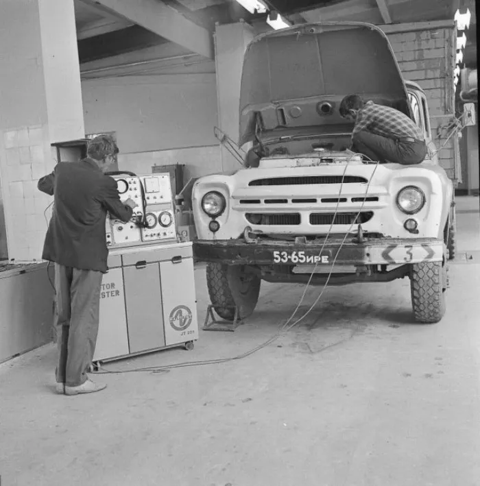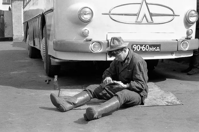 В автобусном парке. 60-е годы.