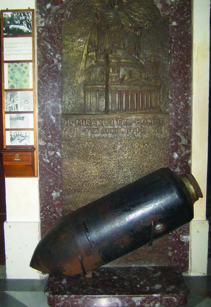 8. 9 апреля 1942 года более 300 граждан Мальты укрылись в Ротонде церкви Моста из-за интенсивной бомбардировки немецкой авиацией. 500-килограммовая бомба пробила купол и приземлилась посреди толпы, однако бомба не взорвалась